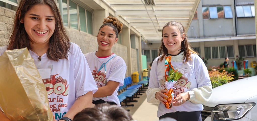 Arrecadamos valores com a comunidade, compramos ovos de chocolate e realizamos a entrega pessoalmente às crianças do Hospital Infantil Darcy Vargas.